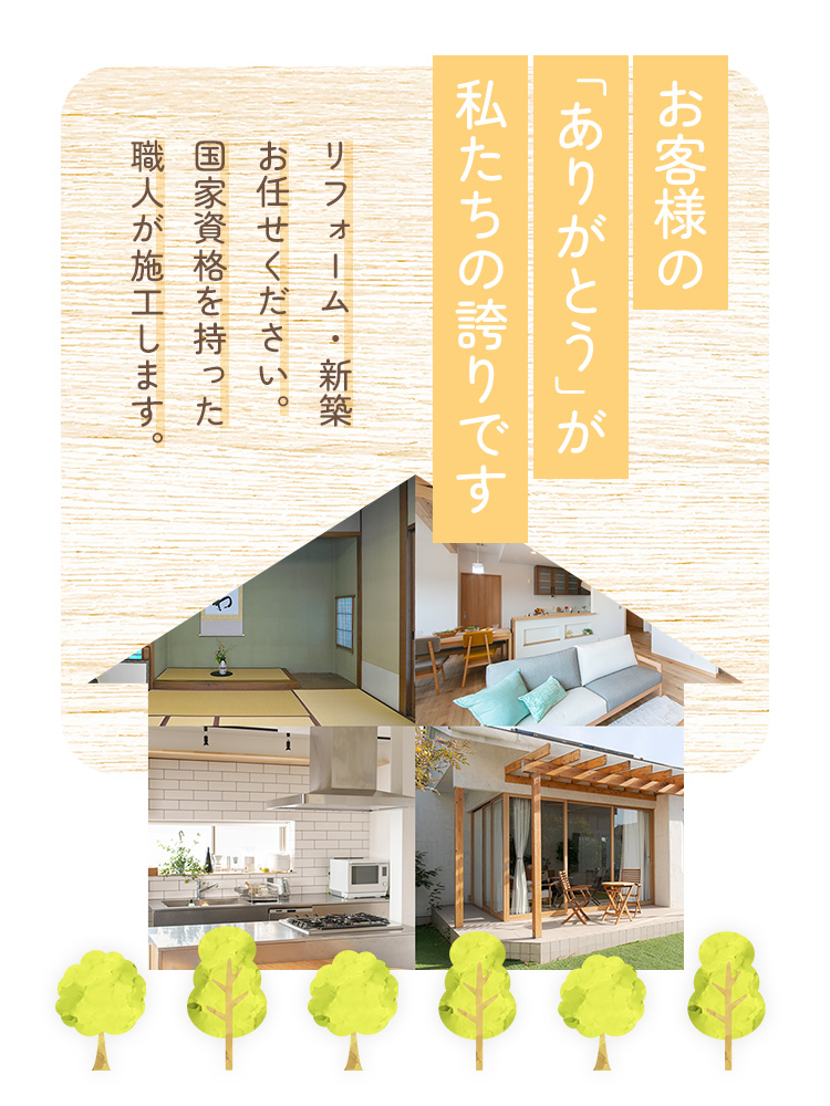 お客様の暮らしを今後も長く支える大切な住まい。最高峰の国家資格を保有する職人が責任をもって施工いたします。